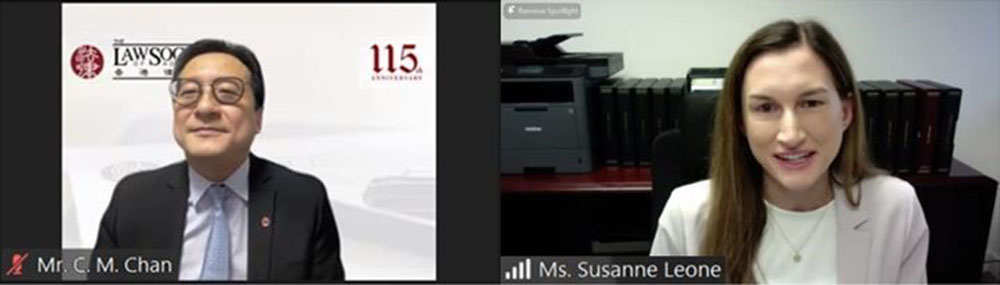 President C. M. Chan (left) and Ms Susanne Leone, Past Chair of Asia Committee of The Florida Bar International Law Section (right) welcomed the webinar participants.