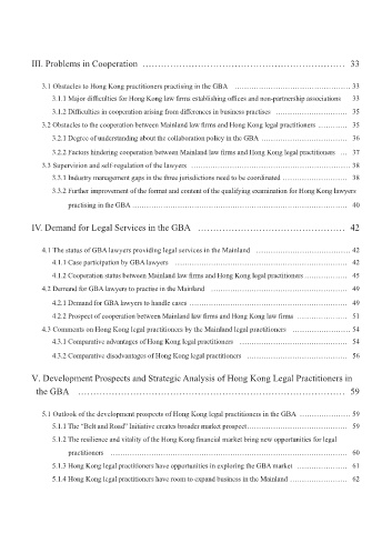3.2 Obstacles to the cooperation between Mainland law firms and Hong Kong legal practitioners ………… 35