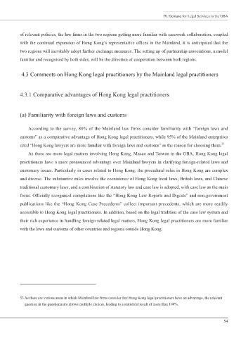53 As there are various areas in which Mainland law firms consider that Hong Kong legal practitioners have an advantage, the relevant