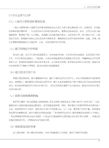 合作。在合作机构的基础上,三地政府、行业协会和监管机构协商制定合作协定,明确跨地区合作的原