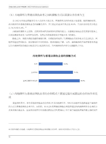 的方式与香港法律执业者合作。同样的,有 64.2% 的香港法律执业者选择通过向内地律所转介业务的方