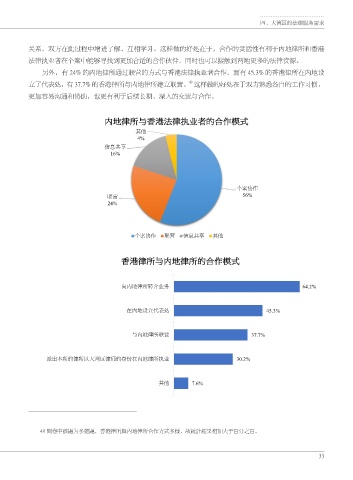 立了代表处,有 37.7% 的香港律所与内地律所建立联营。 这样做的好处在于双方熟悉各自的工作习惯,